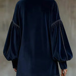 Тази мини рокля с кадифени ръкави тип фенер е създадена, за да впечатлява с изискан драматизъм и модерна женственост. Луксозната памучна материя с кадифен ефект придава дълбочина и мекота, докато обемните ръкави и елегантният детайл с връзка на врата оформят изразителен, но балансиран силует. Мини дължината добавя уверен и съвременен характер, превръщайки роклята в идеален избор за вечери, специални събития и стилни поводи.